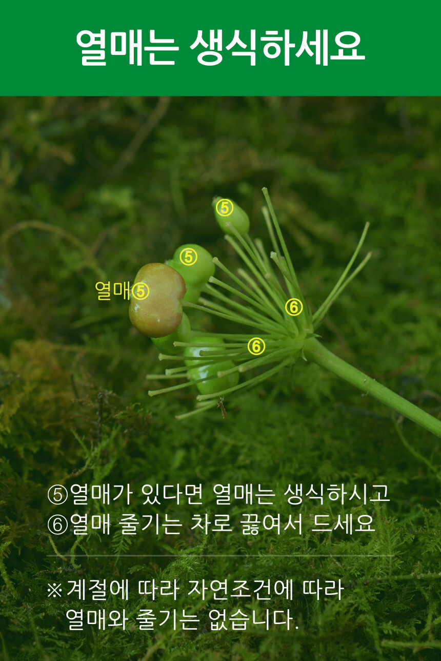 채취 후 바로 드시는 것이 가장 신선합니다.